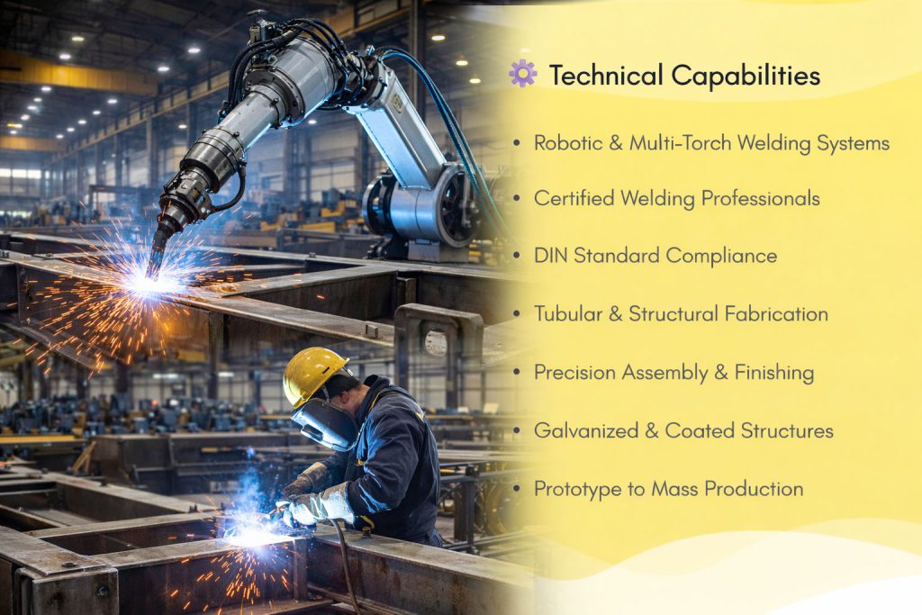 Our advanced infrastructure includes multi-torch welding systems and robotic welding arms to ensure precision, consistency, and high production efficiency.