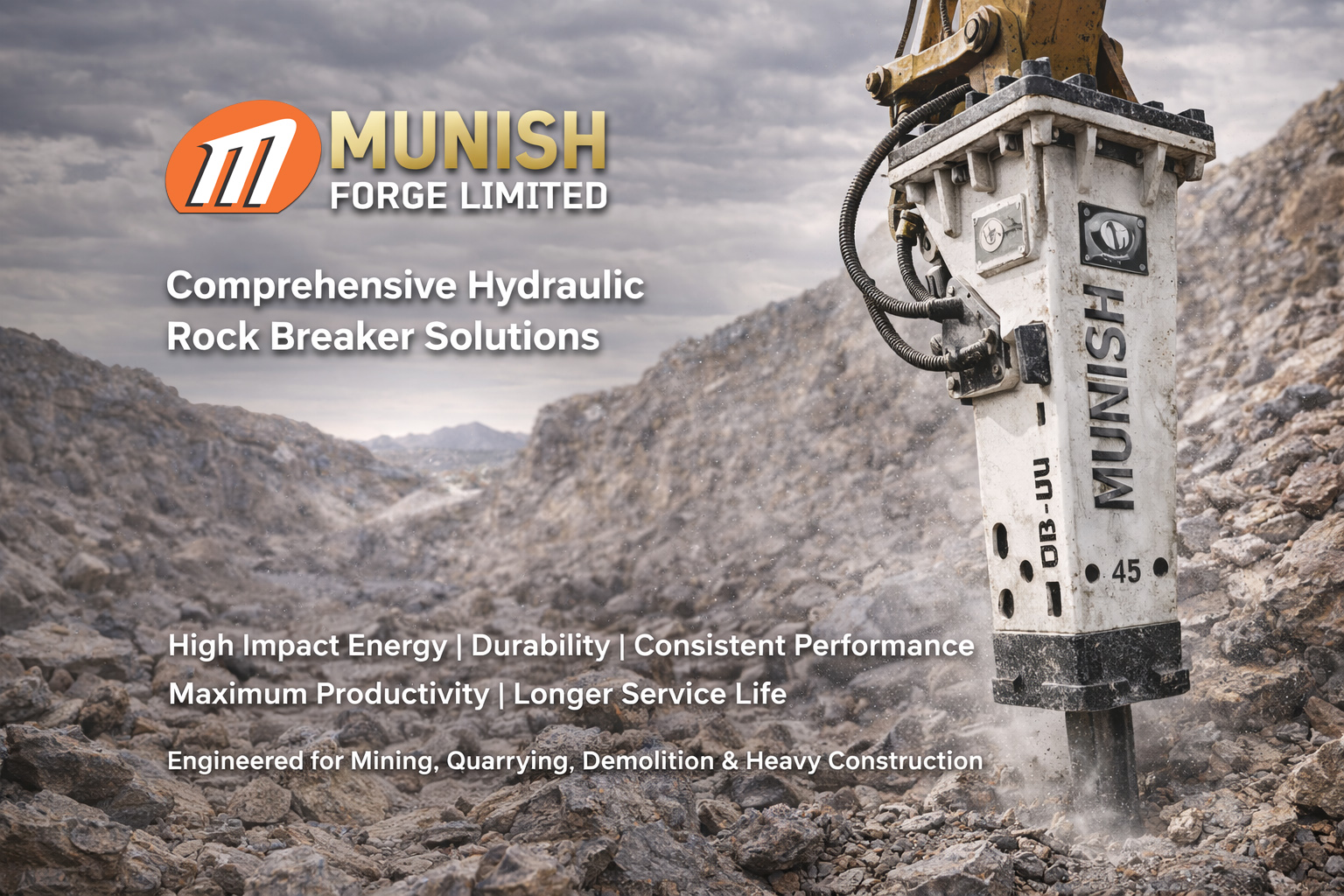 Munish Forge Limited offers a complete range of Hydraulic Rock Breakers and Rock Breaker Spare Parts designed for demanding applications in mining, quarrying, demolition and heavy construction.